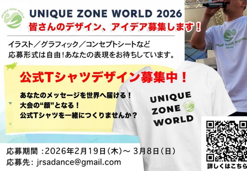 大会の“顔”となるUNIQUE ZONE WORLD公式Tシャツを一緒につくりませんか?